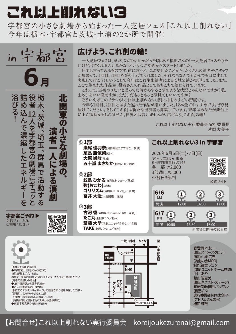 一人芝居フェス "これ以上削れない3 in宇都宮" 参加作品